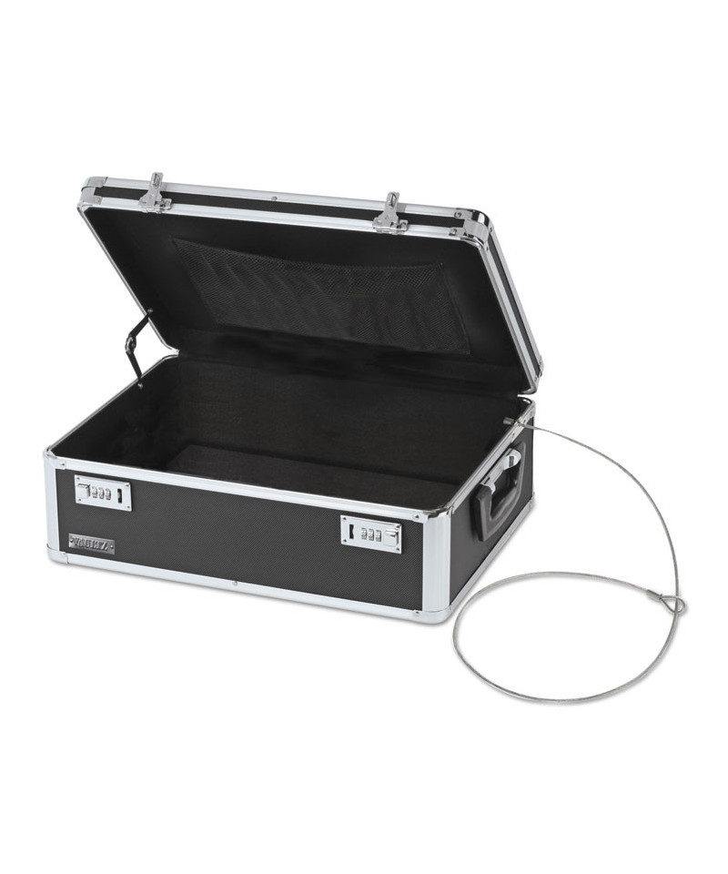 Perfect for protecting your valuables, whether it's your passport, confidential files, documents, computer, cell phone or cash, this storage chest will keep your items secure. Strong construction and a soft interior keep your valuables protected from bumps and scratches while dual combination locks keep them safe from theft. Includes a steel, bolt-down cable for additional security and mesh netting for better interior organization.