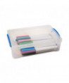 Super Stacker® Large Pencil Boxes are a classic companion for keeping pens, pencils, erasers, markers and a wide variety of school or office supplies organized and within reach. Transparent top, sides and bottom allow you to quickly determine your box's contents, eliminating the need to dig through your collection to find your favorite supplies or your favorite colors, while its snap-tight lid keeps your supplies secure, safely contained within the box you placed them. Unique Super Stacker® design makes it easy to conserve space in busy classrooms, and convenient carry handles simplify both manipulating and transporting it when needed.
