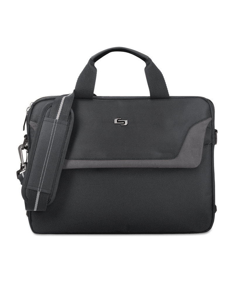 Add to cart Pro Briefcase, 15.6", 15 3/4" x 2 1/4" x 11", Black $48.59 Fully padded laptop compartment. Full size front zip-down organizer section. Back strap slides over luggage handle.