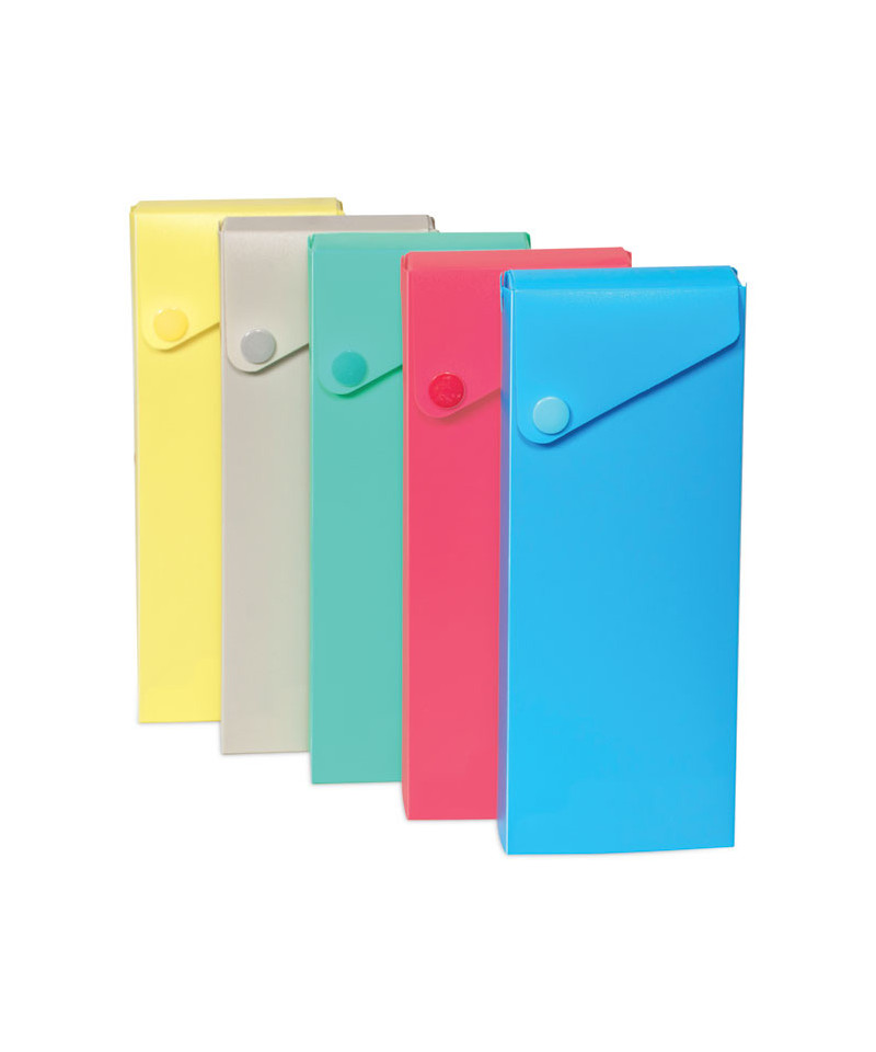 Durable polypropylene case slides open for easy access to pens, pencils and more. Features snap closure. Bright Tropical Tones make it easy to find in your backpack. This product will be cheerfully replaced with one of equal value if defective in materials, manufacturing or packaging at the time of purchase. Except for such replacement, this product is sold without warranty or liability even though defect, damage or loss is caused by negligence or other fault.