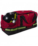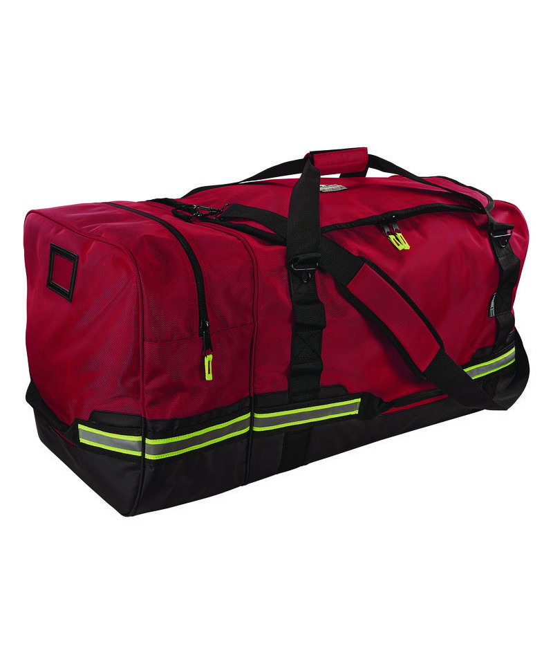 The Arsenal 5008 Firefighter Turnout Bag is designed to organize and haul bulky firefighter gear, work gear, tower climber safety equipment and more. Built tough to withstand harsh conditions, the exterior is made with durable 1,000D polyester and a reinforced water-resistant tarpaulin-reinforced bottom to keep gear dry and protected. The main clamshell compartment is large enough to store firefighter gear and boots, while the zippered side pouch can hold a firefighter helmet, safety hard hat or SCBA mask. A padded shoulder strap and top handle makes it comfortable to transport heavy gear, while multiple handles around the sides allow for quick loading and unloading no matter which way the bag is faced. Reflective accents enhance visibility in low-light conditions. The heavy-duty work duffel bag is ideal for protecting and transporting daily use gear, particularly for volunteer firefighters, EMS medical personnel, tower safety climbers and more.