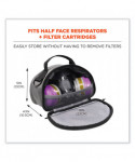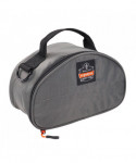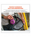 The Arsenal 5187 Half Face Respirator Bag is a step above your standard issue bag with a durable yet lightweight 420D nylon exterior and a 200D lining to protect expensive half face respirators. An easy-open zippered clamshell and belt loop make for quick, one-handed access on the go. A webbing belt loop allows the bag to securely thread through belts for on-the-hip storage. The loop can also be used to secure the bag to equipment. A carrying handle makes for easy grab-and-go transport. An elastic interior pocket securely stores respirator filters, cartridges and other small accessories. The external D-rings can be used to clip keys, glove clips or shoulder straps (not included). The clamshell bag is ideal for those working in industries such as construction, mining, oil and gas, agriculture, firefighting, painting and woodworking.