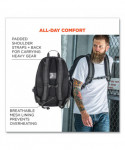 The Arsenal 5188 Work Gear Jobsite Backpack makes for easy transport and storage of work gear on and off the worksite, including hard hats, fall protection, safety vests and more. Built to protect with 600D ripstop polyester and 200D nylon lining, plus padded shoulder straps and back for comfort when transporting heavy gear. Heavy-duty zippers secure your contents inside the gear backpack, while exterior pockets provide additional storage for smaller PPE (such as eyewear) and personal items. The water bottle pocket fits most bottle sizes. The heavy-duty work backpack is ideal for protecting and transporting daily use gear, particularly for workers regularly traveling to different job sites in industries such as construction, oil and gas, mining, telecommunications and more.