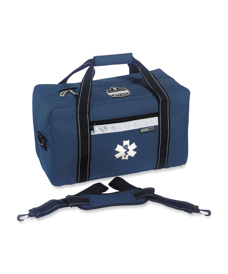 The Arsenal 5220 First Responder Bag has plenty of room to hold and organize a wide variety of first aid supplies and equipment, while also remaining compact enough to easily transport and store. Built tough to withstand harsh conditions, the exterior is made with 600D polyester for long-lasting use while transporting heavy supplies. This zippered medic jump bag opens completely and lays flat for easy access and viewing. Multiple mesh pockets, webbed storage loops and multi-tiered pockets in the interior make for complete and easy organization of first aid supplies. Also features an exterior zippered pocket for personal items. A padded shoulder strap and grab handle make for easy transport in a rapid response situation. Reflective accents enhance visibility in low-light conditions. First aid supplies not included.
