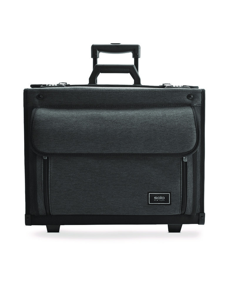 Are you looking for a reliable and stylish way to carry your laptop and essential documents? Look no further than the Solo Classic Recycled Rolling Catalog Case. This polished collection features sleek lines and smart details that are ideal for the office and business travel. Made with recycled PET polyester, the case fits devices up to 17.3" and features a hanging file system, dual combination locks, and checkpoint friendly design. With its durable construction and multiple compartments, this case is perfect for professionals and travelers alike.