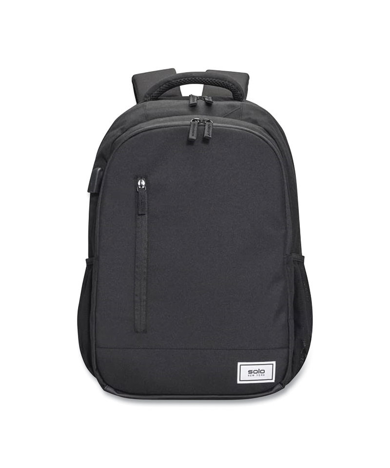The Solo NY® Re:cycled Collection presents the Re:define Backpack constructed with recycled PET material created from eight recycled PET bottles and with antimicrobial and water-repellent coatings to provide protection from bacterial growth and to help keep your bag contents dry. Purchase with purpose as the National Forest Foundation will plant a tree with the sale of each Re:define Backpack. Made from recycled PET bottles has an antimicrobial coating on exterior and lining. Water-resistant coating on exterior only. Fully padded 15.6" laptop compartment with lockable zippers and RFID data protection pocket helps secure personal data encoded on your credit cards, IDs and passports. External USB port, internal iPad/tablet pocket, and headphone port add extra convenience to carrying around your accessories. Checkpoint friendly design allows you to pass through airport security faster. Back strap slides over luggage handle. Re:cycled Collection brings a sustainable angle to sleek design, making green choices accessible to the masses. Each item in this collection is built with city-functionality in mind and offers an uncompromising style. Here's to putting a little weight of the world on our shoulders.