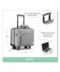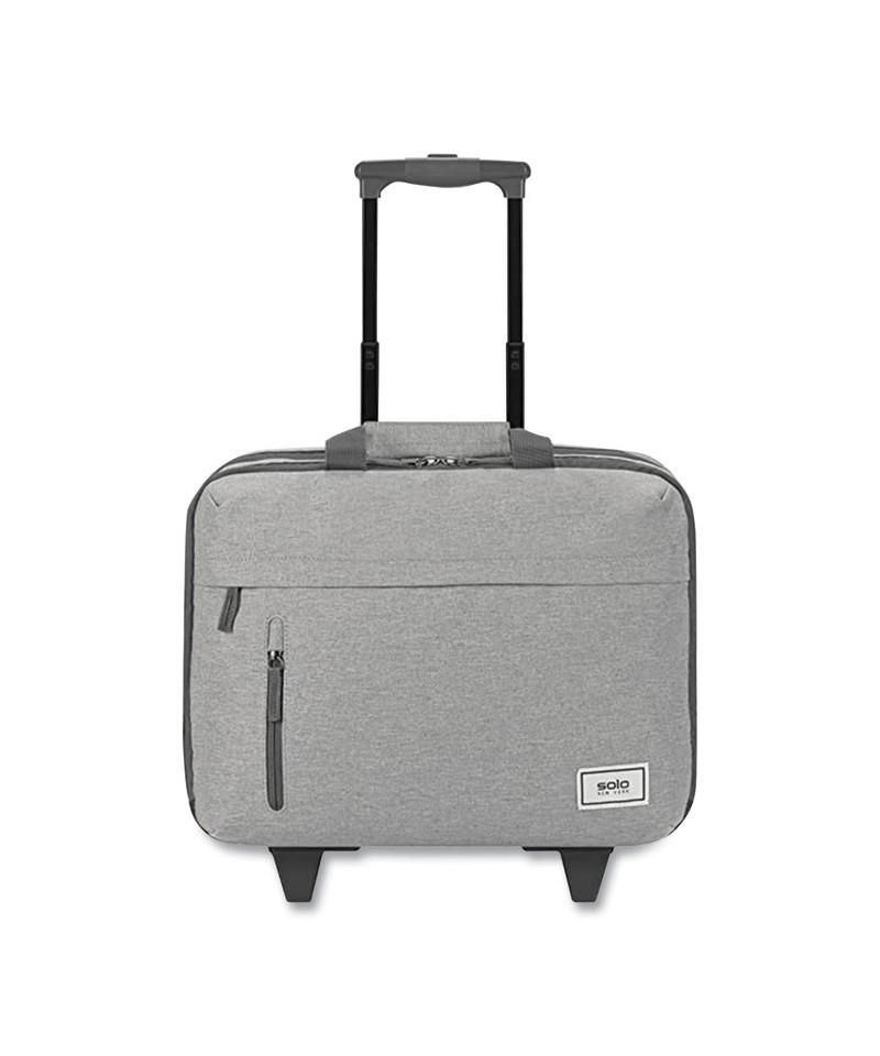Re:Start Underseat Rolling case features a sustainable design to provide a sustainable choice to carry your belongings. Separate compartment offers safe storage for your laptop up to 15.6". Front zippered pocket with organizer section and key clip provides easy access to your items. Smooth-rolling wheels glide across surfaces for easy travel. Push-button handle extends and retracts for effortless mobility.