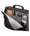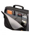 Compatible with laptops with 17 to 18.4" screens. Adjustable divider in laptop case accommodates a variety of laptop sizes. Smart Organization™ panel provides a place for all your electronics, gadgets and accessories. Speed Pocket™ is a quick access, secure place to put valuables (watch, keys, cell phone and more) prior to passing through airport security. Pocket on inside of laptop case stores files, folders and other small items. Luggage strap securely attaches briefcase to most rolling luggage. Adjustable shoulder strap and comfortable, fully-padded handles.