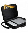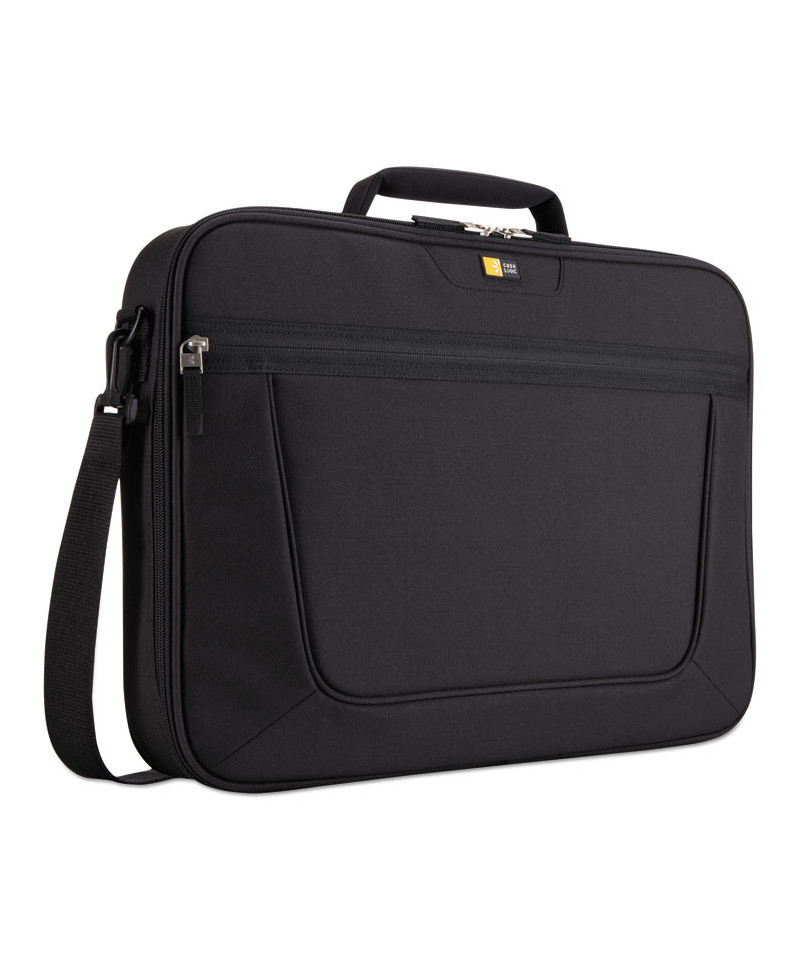 Tailored case compatible with most laptops with a 17.3" screen. Padded laptop compartment walls provide extra protection. Slip pocket keeps documents separated from other items in your bag. Front pocket panel provides basic organization for small daily accessories. Front pocket features a wide base for bulky items like a power brick. Clamshell design allows the case to open completely for full access to your laptop. Adjustable strap secures laptop in padded compartment. Carry comfortably with neoprene-lined, padded handles and a removable strap with anti-slip shoulder pad.