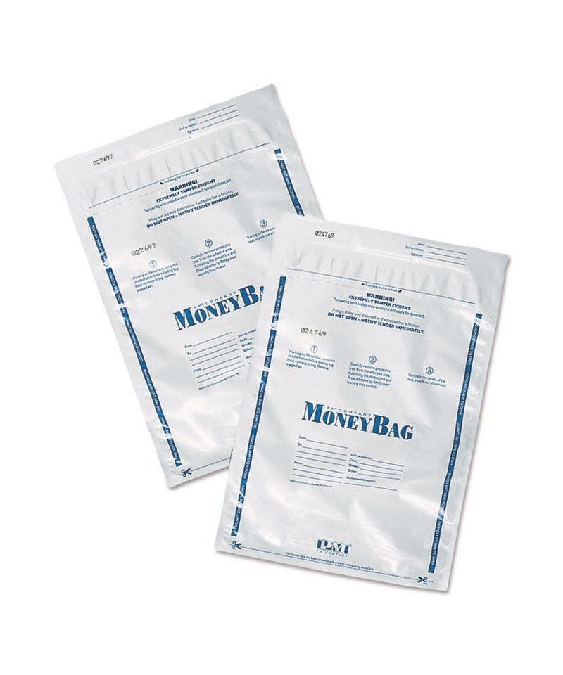 Add to cart Plastic Money Bags, Tamper Evident, 9 x 12, Clear, 50/Pack $26.49 Strength and performance in a tamper-evident money bag. Sequentially numbered and barcoded with receipt.
