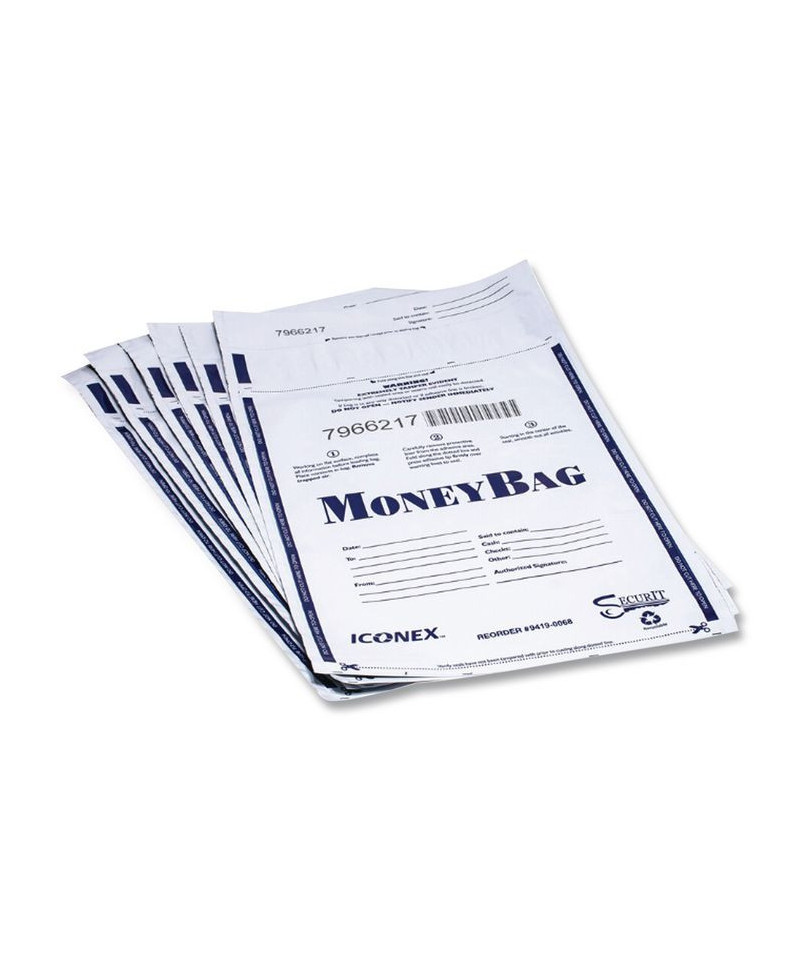 Add to cart Plastic Money Bags, Tamper Evident, 9 x 12, White, 50/Pack $26.49 Strength and performance in a tamper-evident money bag. Sequentially numbered and barcoded with receipt.