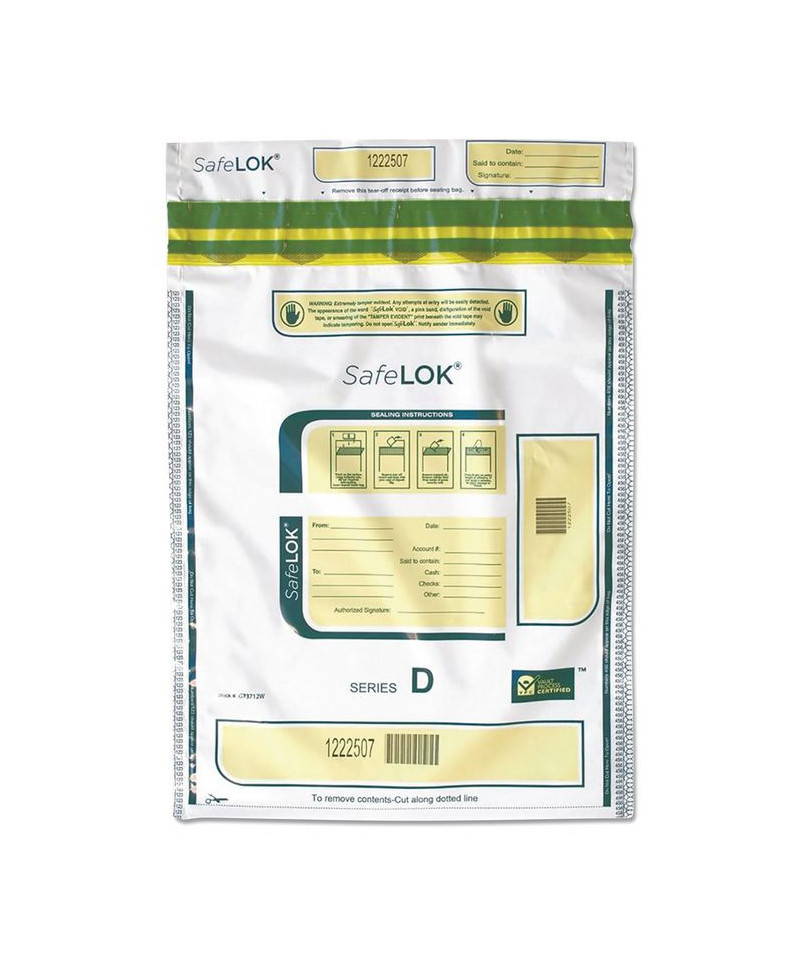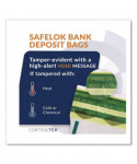 Secure and easy-to-use tamper-evident security bags can be used for store deposits and cash transfers. Special thermochromic ink turns red when subjected to heat. Void message reveals tampering attempts. Security micro printing and indented side welds prevent cutting and resealing. Press2Lok closure. Holds up to 2,000 bills.