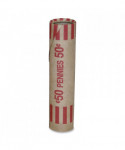 Preformed tubular brown Kraft coin wrappers are color-coded to meet Federal Reserve and ABA standards. One end is pre-crimped for easy filling.