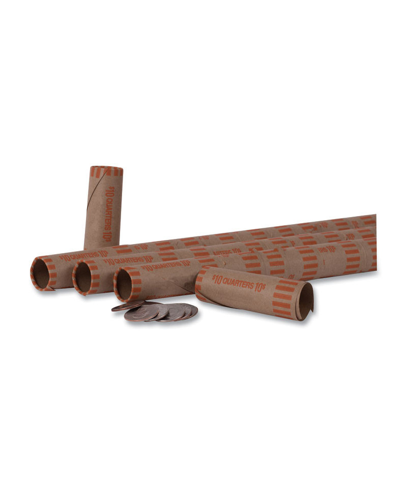 Made of heavy-duty kraft paper with one end crimped for easy filling. Features a double-wall of paper for extra reinforcement. Designed to work in all coin sorting equipment.