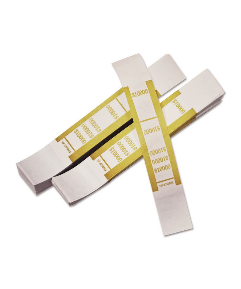 Mustard/white Kraft $10,000 currency straps are manufactured and color-coded to Federal Reserve and Aba standards. Quick stick adhesive for easy wrapping.