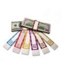1,000 feet of continuous, color-coded flat coin wrappers. Approximately 1,900 wrappers per roll. For use in automatic coin wrapping machines.