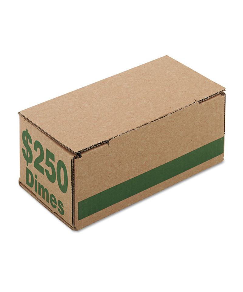 Add to cart Dimes Coin Box, Accommodates $250 in Dimes, 15.5" x... $76.99 Heavy-duty corrugated box is made for coin organizing, shipping, and storing rolls of coins. The sturdy tuck-type lid stays closed during shipping....