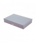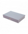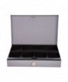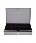 Ideal for coins and bills. This compact cash box has five compartments for rolled or loose coins and one compartment for bills or checks. It's compact enough to keep in a desk drawer. The cash box is keyed differently and comes with two keys.