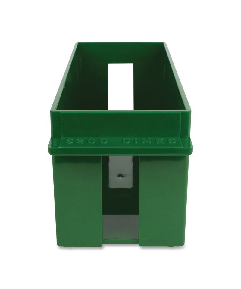 Add to cart Stackable Plastic Coin Tray, Accommodates $50 in Dimes,... $11.38 Heavy-duty ABA color-coded plastic trays stack for ease of storage and identification. Denomination and capacity are etched in tray sides.