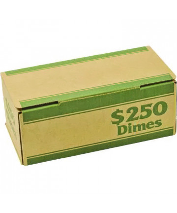 Add to cart Dimes Coin Box, Accommodates $250 in Dimes, 15.5" x... $76.99 Heavy-duty corrugated box is made for coin organizing, shipping, and storing rolls of coins. The sturdy tuck-type lid stays closed during shipping....
