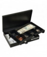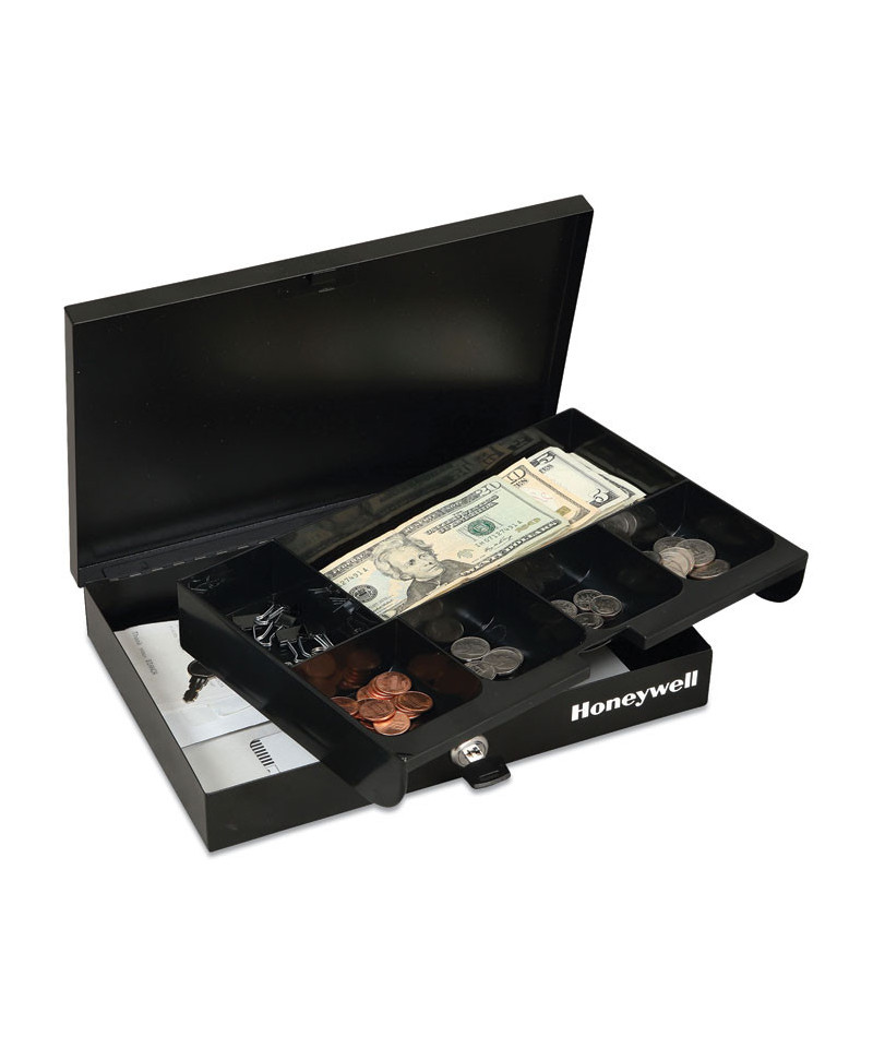 Great for storing cash and other small valuables in small spaces. Features a removable cash tray with one bill and five coin slots, a key lock with two entry keys included and a scratch-resistant powder coated finish. Pre-drilled mounting holes and hardware included.