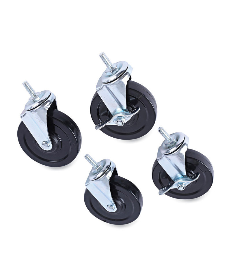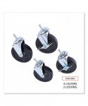Help make moving wire shelving easy with the caster kit for use with Alera® wire shelving. Constructed with a snap-ring around stem that makes for an easy attachment. The 360-degree rotation wheels provide easy mobility for maneuvering the shelving in and out of spaces and around corners. Lock the casters when at rest for added stability. Using casters may reduce load capacity for the shelving unit.