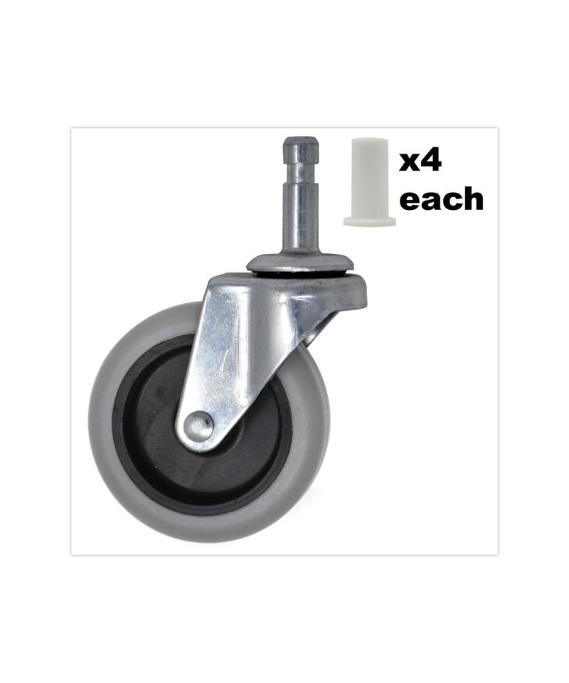 Replacement casters are designed specifically for Rubbermaid Commercial products. Precision engineering ensures smooth and quiet gliding. Bayonet stem simplifies installation.
