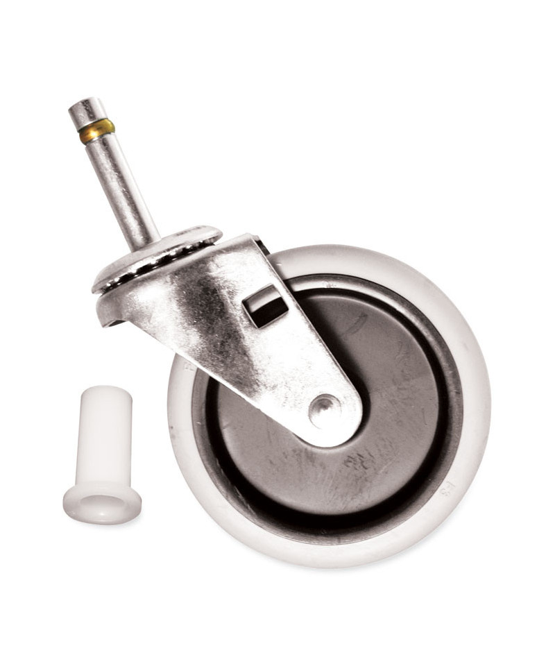 Replacement casters are designed specifically for Rubbermaid Commercial products. Precision engineering ensures smooth and quiet gliding. Bayonet stem simplifies installation.