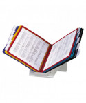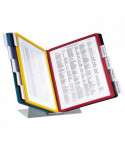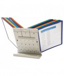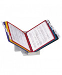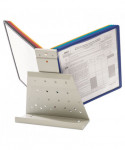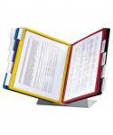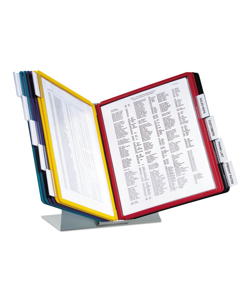 Organize and quickly access frequently used documents with the VARIO® 10-Panel Desktop Reference System from DURABLE®. This German-designed organizational powerhouse is meticulously crafted for anyone seeking unparalleled efficiency. Made with German precision, this reference display system is a testament to quality, ensuring lasting durability. Say goodbye to flimsy alternatives and embrace the reliability of VARIO. Experience efficiency at your fingertips with easy-load, glare-free, and scratch-resistant pockets. Each high-quality sleeve is engineered to keep your paperwork crease and tear-free, even with frequent handling. The powder-coated steel base and non-slip grip also provide a stable foundation that stands up to heavy use. With 10 pockets capable of displaying up to 20 letter-size sheets, VARIO is the go-to solution for organizing schedules, SOPs, directories, class lists, instructions, charts, maps, emergency numbers, menus, team rosters – any frequently referenced paperwork. The perfect solution for high-traffic areas like lobbies, front desks, conference centers, warehouses and more, VARIO seamlessly integrates into your workspace. Organize and color-code your documents with the assorted frame colors (2 black, 2 red, 2 yellow, 2 green, 2 dark blue) and 10 snap-on tabs. For over 100 years, DURABLE has been synonymous with quality, design, and functionality. As a testament to this legacy, DURABLE products combine innovative design with a wealth of experience. Trust in a brand that understands the importance of organization for enhancing productivity. Bring order to your daily routine and make referencing crucial information a breeze. Choose VARIO for an organized, streamlined, and optimized workspace. Choose DURABLE and experience the difference that quality and innovation can make.