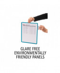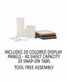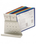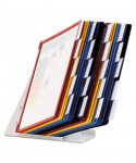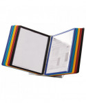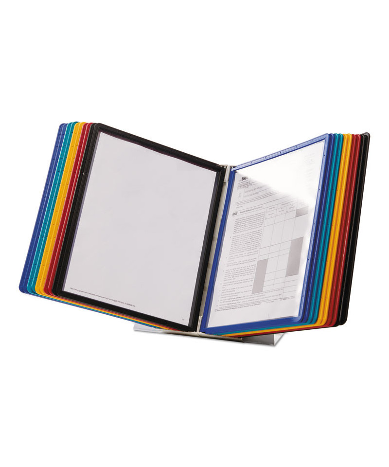 Organize and quickly access frequently used documents with the VARIO® 10-Panel Desktop Reference System from DURABLE®. This German-designed organizational powerhouse is meticulously crafted for anyone seeking unparalleled efficiency. Made with German precision, this reference display system is a testament to quality, ensuring lasting durability. Say goodbye to flimsy alternatives and embrace the reliability of VARIO. Experience efficiency at your fingertips with easy-load, glare-free, and scratch-resistant pockets. Each high-quality sleeve is engineered to keep your paperwork crease and tear-free, even with frequent handling. The powder-coated steel base and non-slip grip also provide a stable foundation that stands up to heavy use. With 10 pockets capable of displaying up to 20 letter-size sheets, VARIO is the go-to solution for organizing schedules, SOPs, directories, class lists, instructions, charts, maps, emergency numbers, menus, team rosters – any frequently referenced paperwork. The perfect solution for high-traffic areas like lobbies, front desks, conference centers, warehouses and more, VARIO seamlessly integrates into your workspace. Organize and color-code your documents with the assorted frame colors (2 black, 2 red, 2 yellow, 2 green, 2 dark blue) and 10 snap-on tabs. For over 100 years, DURABLE has been synonymous with quality, design, and functionality. As a testament to this legacy, DURABLE products combine innovative design with a wealth of experience. Trust in a brand that understands the importance of organization for enhancing productivity. Bring order to your daily routine and make referencing crucial information a breeze. Choose VARIO for an organized, streamlined, and optimized workspace. Choose DURABLE and experience the difference that quality and innovation can make.