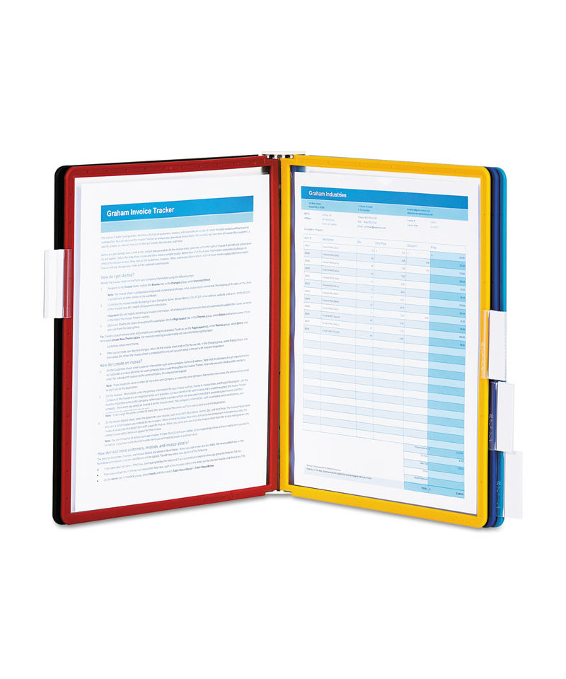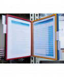 Organize and quickly access frequently used documents with the VARIO® 5-Panel Wall-Mount Reference System from DURABLE®. This German-designed organizational powerhouse is meticulously crafted for anyone seeking unparalleled efficiency. Made with German precision, this reference display system is a testament to quality, ensuring lasting durability. Say goodbye to flimsy alternatives and embrace the reliability of VARIO. Experience efficiency at your fingertips with easy-load, glare-free, and scratch-resistant pockets. Each high-quality sleeve is engineered to keep your paperwork crease and tear-free, even with frequent handling. The powder-coated steel base provides a stable foundation that stands up to heavy use. With 5 pockets capable of displaying up to 10 letter-size sheets, VARIO is the go-to solution for organizing schedules, SOPs, directories, class lists, instructions, charts, maps, emergency numbers, menus, team rosters – any frequently referenced paperwork. The perfect solution for high-traffic areas like lobbies, front desks, conference centers, warehouses and more, VARIO seamlessly integrates into your workspace. Organize and color-code your documents with the assorted frame colors (black, red, yellow, green, dark blue) and 5 snap-on tabs. Choose between a wall mount or magnetic wall mounted kit. For over 100 years, DURABLE has been synonymous with quality, design, and functionality. As a testament to this legacy, DURABLE products combine innovative design with a wealth of experience. Trust in a brand that understands the importance of organization for enhancing productivity. Bring order to your daily routine and make referencing crucial information a breeze. Choose VARIO for an organized, streamlined, and optimized workspace. Choose DURABLE and experience the difference that quality and innovation can make.