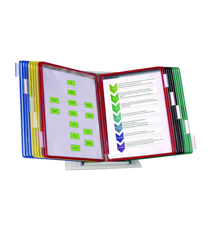 Whether at your desk, in a workshop or at a workstation, maximize your productivity by placing important information at your fingertips. Includes desk base unit, two universal mounting brackets, required hardware and 20 assorted wire reinforced pockets. Snap on index tabs with color coded inserts help you find information quickly. Great for production workshops, factories, warehouses, machines, manufacturing lines, and assembly stations.