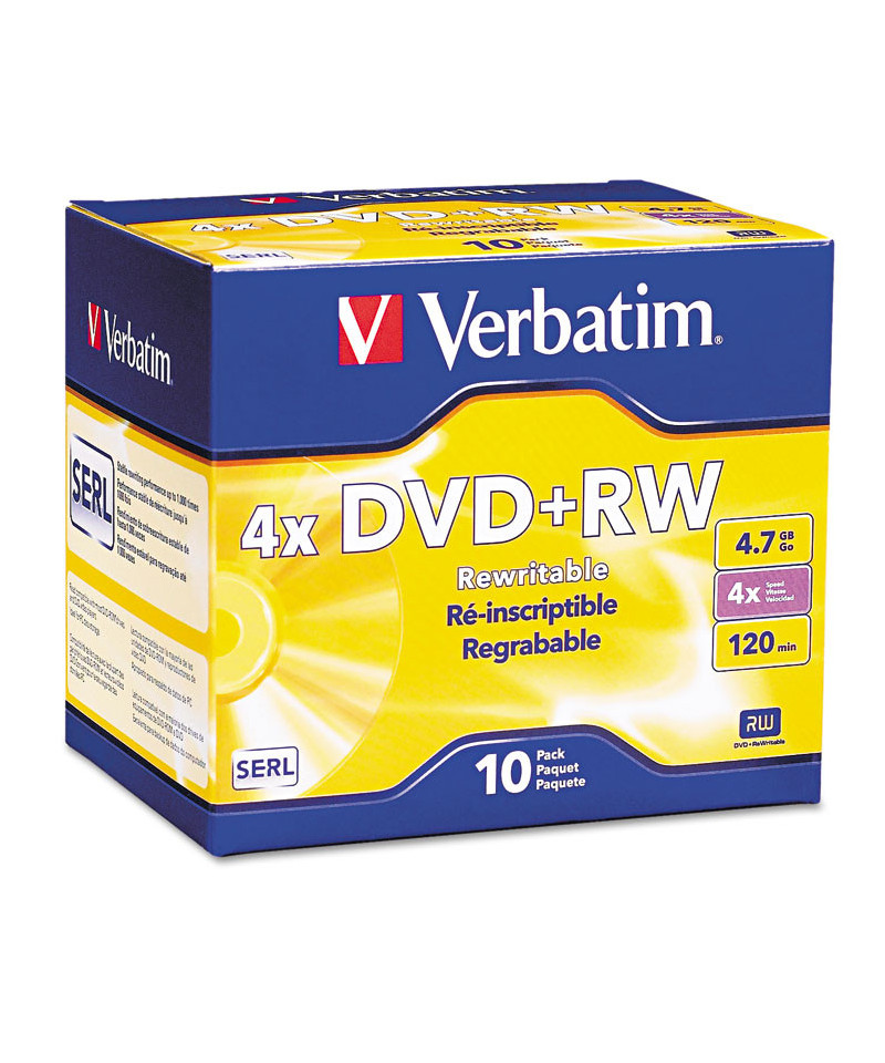 DVD+RW offers rewritable storage capacity, superior recording quality, and compatibility with 1x to 4x DVD+RW writers. It is ideal for archiving or backing up 4.7GB of data or 120 minutes of DVD-quality video. DVD+RW disc utilizes Super Eutectic Recording Layer (SERL) recording dye, which minimizes noise during write/rewrite cycles and provides superior archival stability. Compatible with most DVD-ROM drives as well as writers from major DVD+R/+RW drive manufacturers.