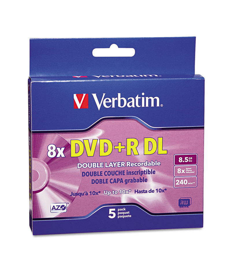 Preferred by DVD drive manufacturers, these DVDs continue to set the standard for high-speed disc performance, reliability, and compatibility. DVD+R Double Layer nearly doubles the storage capacity with two AZO recording layers on a single-sided disc. Certified and supported by the industry high speed Double Layer writers, they are approved for high speed burning up to 10X speeds. Store up to 8.5 GBs of video in approximately 12-15 minutes or less while maintaining compatibility with most DVD video players or DVD-ROM drives.