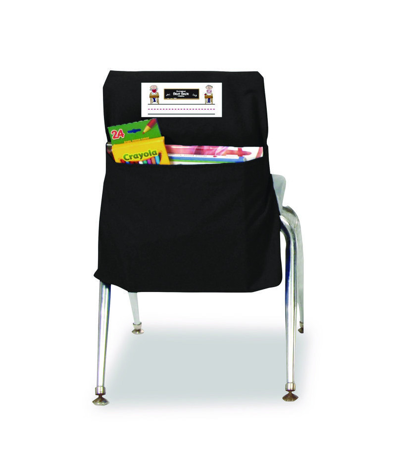 Our elastic-back chair pockets will assist with hard-to-fit, ergonomic back and larger size chairs. Our products are sewn and back stitched for extra durability and all have a roomy storage pocket with a 2" gusset to expand for extra storage. A clear plastic sleeve on each Seat Sack holds a replaceable name tag so your chair pockets are an economical investment for your classroom that can be used year after year.