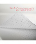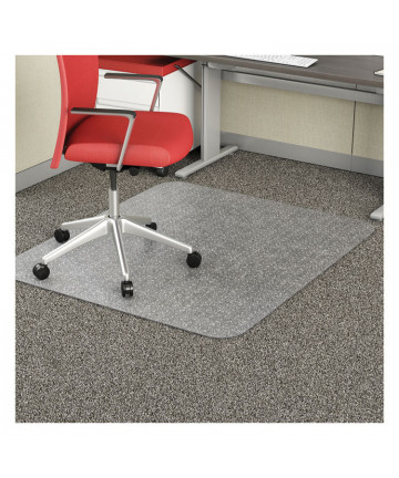 Thinner, lightweight EconoMat® delivers a great value to anyone looking for an occasional-use office chair mat to protect low pile and commercial carpets up to 1/4" thick. Easy-glide rolling surface provides smooth office chair movement to help minimize stress and strain on users back, legs and feet. Studded design grips carpet and keeps the chair mat from moving while protecting floors from caster wear, spills and heavy traffic. Free and Clear® non-orthophthalate, non-cadmium formula promotes a healthy work environment while offering exceptional clarity without harsh chemicals.