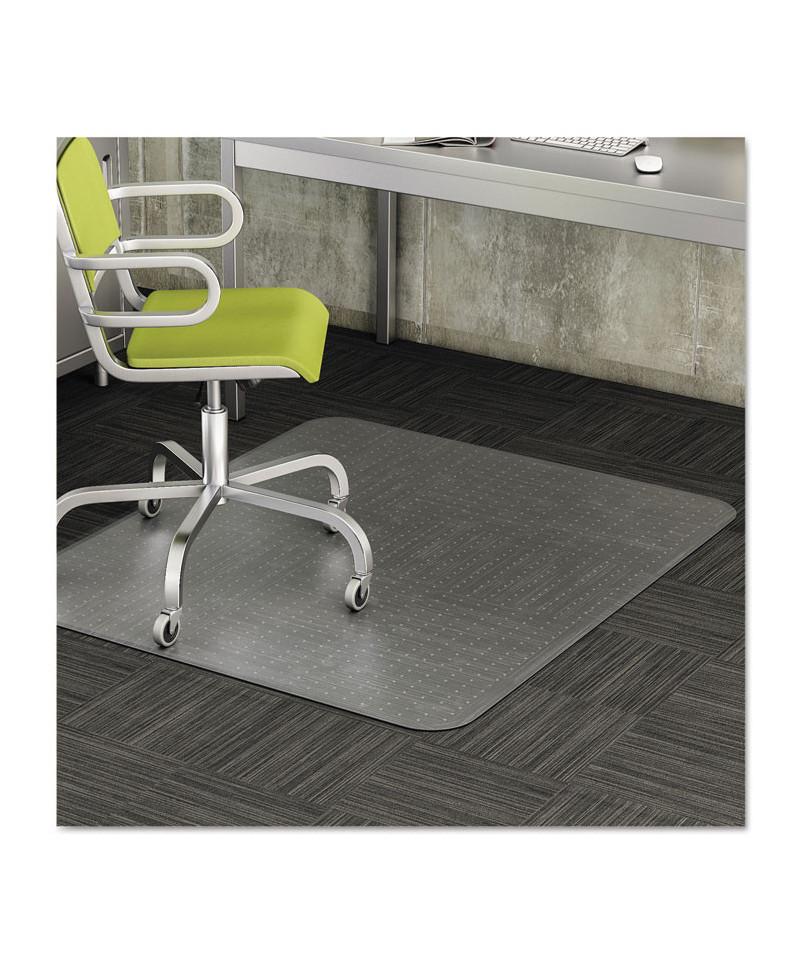 This chair mat offers lightweight yet durable protection for carpets up to 0.38" thick, making it ideal for moderate use in offices and home workspaces. Its easy-glide rolling surface ensures effortless chair movement, reducing strain while enhancing mobility. The studded backing keeps the mat securely in place, preventing shifting while shielding carpets from caster wear, spills, and heavy foot traffic. Made with a Free and Clear® non-phthalate, non-cadmium formula without compromising clarity or durability. The smooth beveled edge allows for an easy transition from carpet to mat, ensuring a seamless and professional workspace setup.
