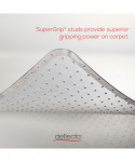 Sophisticated distinction for the demanding executive. High quality, heavy-weight protective vinyl chairmat engineered for exceptional performance. Extra-thick, intensive, all-day use chairmat for carpets over 1/2" thick. Smooth beveled edge for easy carpet to mat transition. Studded design secures mat from moving while protecting carpet from caster wear, spills and heavy traffic Free and Clear® non-orthophthalate, non-cadmium formula promotes a healthy work environment while offering exceptional clarity and durability.
