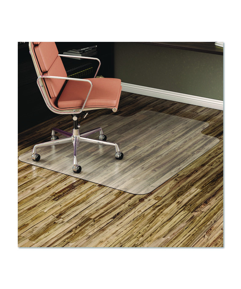 Non-studded design protects hard floor surfaces from caster wear, spills and heavy traffic. Ideal for all-day use on wood, tile, laminate and other hard floors (not suitable for use on concrete floors). Easy-glide rolling surface provides effortless chair movement. Free & Clear non-orthophthalate, non-cadmium formula promotes a healthy work environment while offering exceptional clarity and durability. Classic straight edge finish.