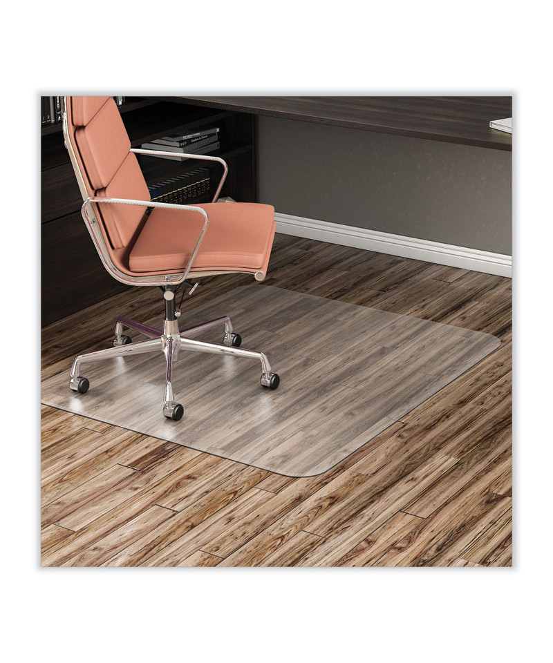 Non-studded design protects hard floor surfaces from caster wear, spills and heavy traffic. Ideal for all-day use on wood, tile, laminate and other hard floors (not suitable for use on concrete floors). Easy-glide rolling surface provides effortless chair movement. Free & Clear non-orthophthalate, non-cadmium formula promotes a healthy work environment while offering exceptional clarity and durability. Classic straight edge finish.