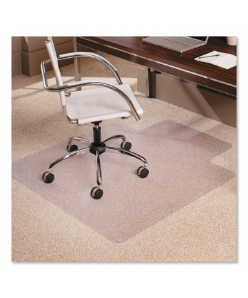 Beautiful crystal clear chair mat features innovative linear design for greater comfort and a smoother glide. Experience an exceptional mat engineered for all day support. Micro cleats secure the mat firmly in place. Premium mat protects carpets up to 3/4" thick including padding. Straight edge.