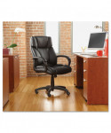 Ultra-soft cushions, side bolsters and lumbar bolsters for maximum support. Plush, thickly-padded headrest and arm rests. Soft touch bonded leather upholstery for style and comfort. Waterfall seat edge reduces pressure points at the back of the knees for improved circulation. Five-star base with casters for easy mobility.