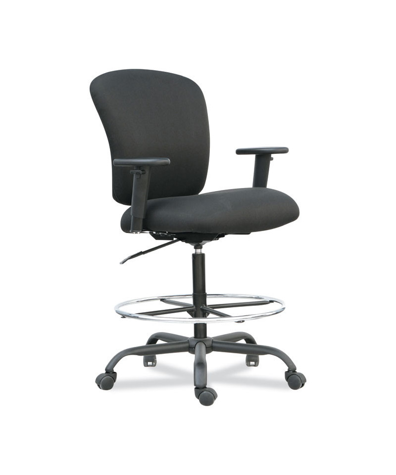 Generously padded, contoured seating that's specifically designed and ideal for the big and tall user. Durable, reinforced seating structure and steel base for maximum, reliable support. Enhanced padding and fabrics for extra support throughout the workday. Welded, integrated foot ring for leg support. Height adjustable soft-padded T-arms for optimal arm positioning. Waterfall seat edge reduces pressure points at the back of the knees.