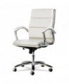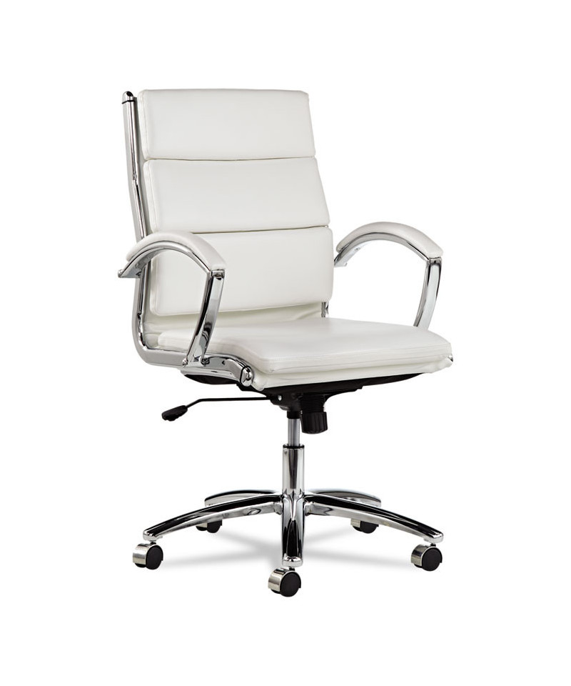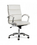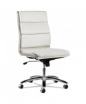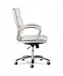 Contemporary padded seating blends sleek design with soft, supportive comfort. Its waterfall seat alleviates pressure behind the knees to help improve circulation. Carefully cushioned armrests feature padded caps for enhanced comfort during extended use. Designed with a stable five-star chrome base and smooth casters, it delivers easy mobility across office spaces.