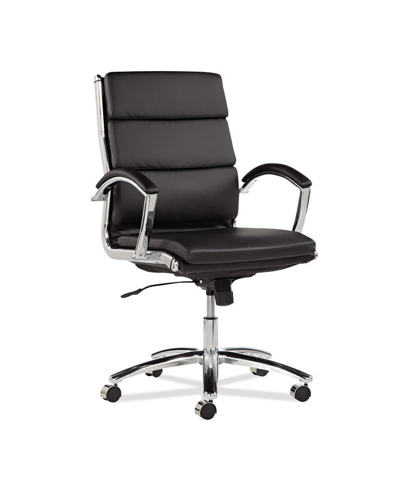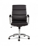 Alera Neratoli Mid-Back Slim Profile Chair, Faux Leather, Supports Up to 275 lb, Black Seat/Back, Chrome Base
