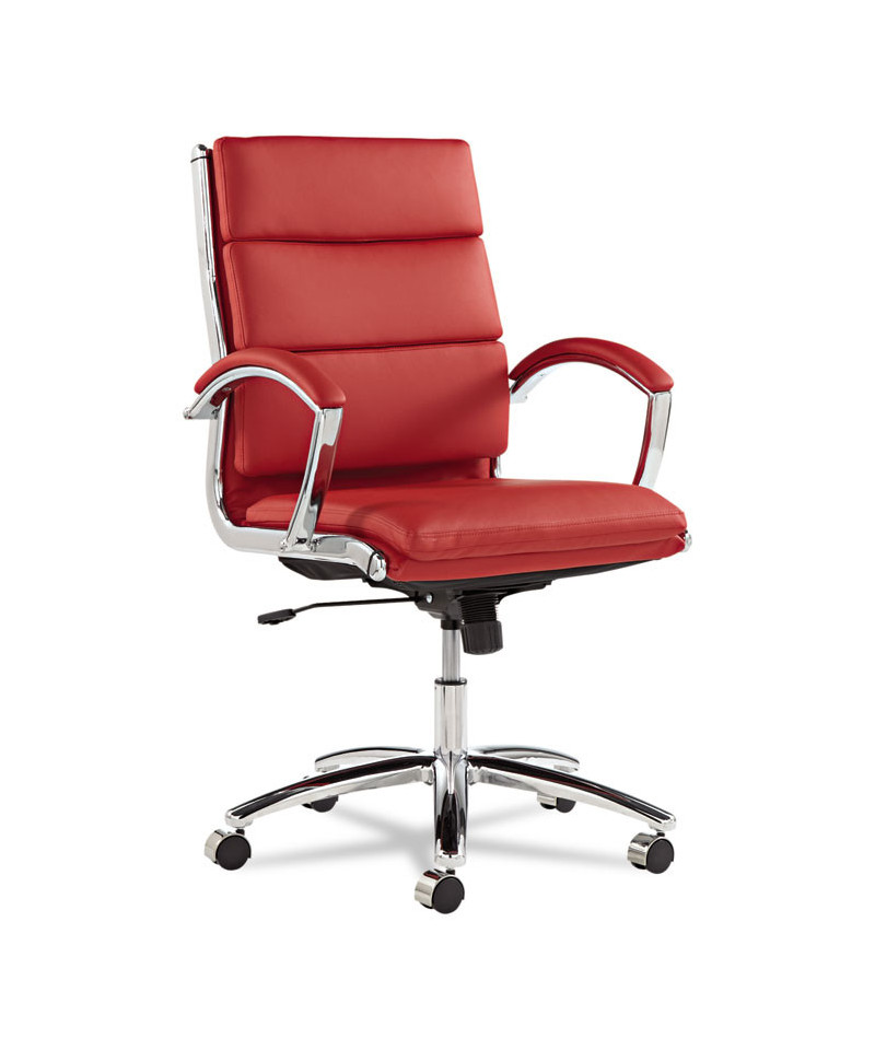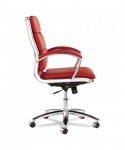 Contemporary padded seating blends sleek design with soft, supportive comfort. Its waterfall seat alleviates pressure behind the knees to help improve circulation. Carefully cushioned armrests feature padded caps for enhanced comfort during extended use. Designed with a stable five-star chrome base and smooth casters, it delivers easy mobility across office spaces.
