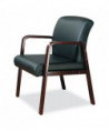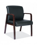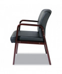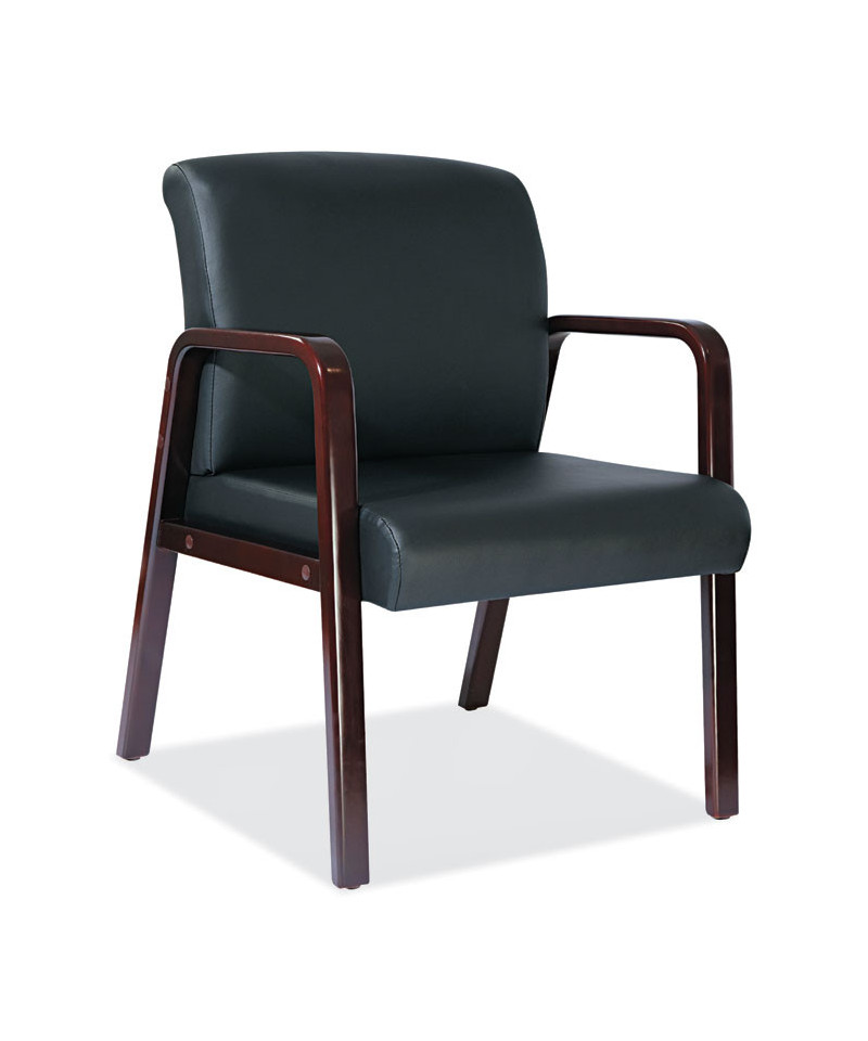 Give guests and visitors a comfortable place to wait with this bonded leather guest chair. Constructed with soft touch, leather upholstery that's easy-to-clean. Built with a stylish and durable wood frame for longevity. Includes leveling guides to help compensate for uneven floors. The modern style, low maintenance materials, and economical pricing make it ideal for lobbies, waiting rooms, or additional office seating.