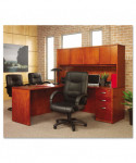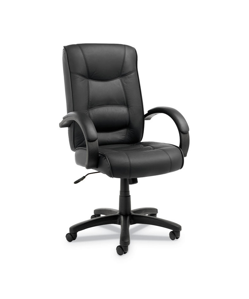 Sink into this luxurious high-back chair for all-day office comfort. Tailored seat and back with top-grain leather upholstery. Waterfall seat design reduces pressure at the back of your knees for improved circulation. Roll armrests feature padded leather caps for added comfort. Heavy-duty nylon base has dual-wheel casters for easy mobility.