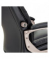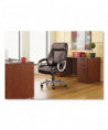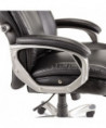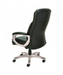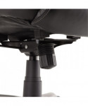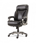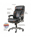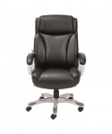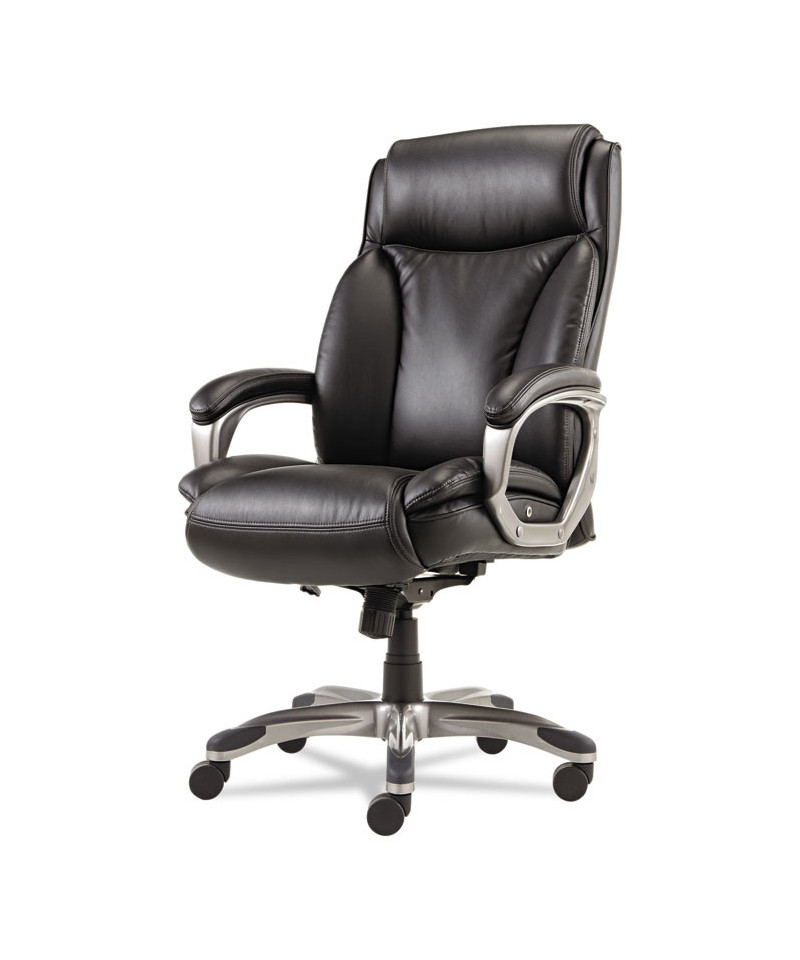 Coil spring cushioned seat provides long-lasting, mattress-like comfort. Ergonomic side bolsters for added support. Adjustable lumbar support for optimal back positioning. Integrated cushioned leather headrest and padded bonded leather armrests. Five-star base with protective foot zones. Generously cushioned waterfall seat reduces pressure points at the back of the knee.