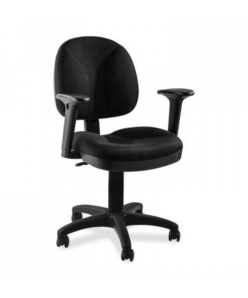 Contoured seat and back provide added comfort for long hours at your desk. Features pneumatic seat adjustment and rotates a full 360° in either direction for ease of motion. Black five-star base with casters. Durable 100% acrylic upholstery. Optional Arms sold and shipped separately.